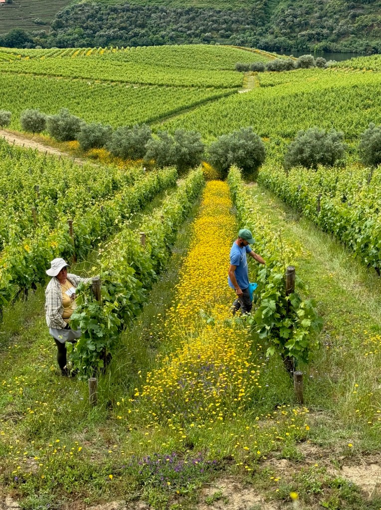 I have a special fondness for Tinta Francisca and Viosinho. They make slender vines, luminous spring hedges, and perfectly ripened grapes, blue-black in the Francisca, golden-yellow in the Viosinho.