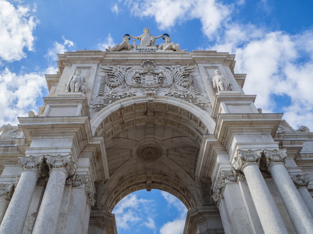 After lunch, continue to Terreiro do Paço. At the river’s edge stands Cais das Colunas, the dock marked by two marble pillars where visitors once arrived by ship. Before air travel, this was Lisbon’s grand entrance. In the center of the square, the equestrian statue of King Dom José I greets you.