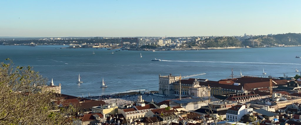 From the castle walls, the Tagus River dominates the horizon. Below lies Terreiro do Paço, the courtyard of the royal palace destroyed by the earthquake.  Squint and you might imagine Baroque carriages arriving with courtiers seeking the king’s favor.